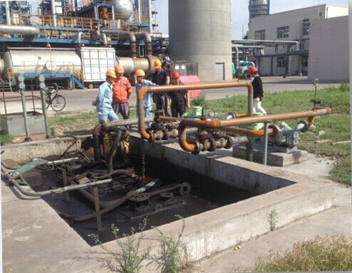 改造前:油水混合物的提升,以前為自吸式離心泵,老堵塞,且氣穴現(xiàn)象嚴(yán)重,泵的壽命大大縮短,需要另外的引流、罐泵,故障率高,使用效果不好